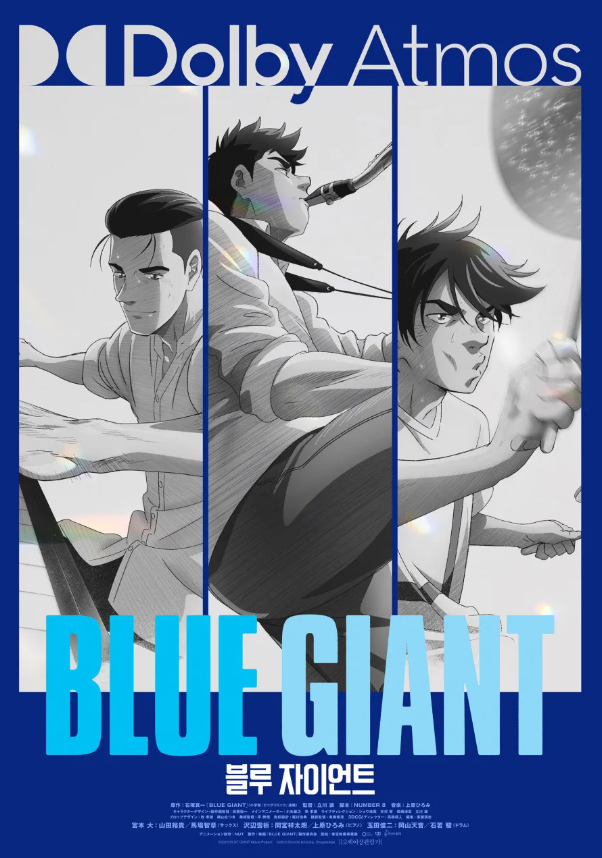 이번에 소개할 애니메이션은 '블루 자이언트'입니다. 장르는 드라마, 음악이며 감독은 타치카와 유즈루입니다. 각본은 NUMBER 8이 맡았습니다. 개봉일은 일본 기준으로 2023년 2월 17일이고 한국에서는 2023년 10월 18일에 처음 개봉을 했지만 2024년 10월 18일에 재개봉한 적이 있습니다. 이 영화는 일본의 장편 만화 '블루 자이언트'를 원작으로 하는 애니메이션 영화입니다. 원작팬들을 위한 선물 같은 작품이기도 합니다. 원작 작가는 이시즈카 신이치입니다.